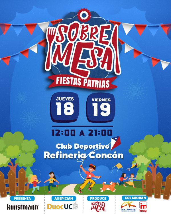 🇨🇱✨ C H I…..!!!! Siiiii, ya se siente el aire dieciochero: el olor al asadito recién hecho, un terremoto en la mano y el zapateo al ritmo de las mejores cuecas 🎶 Este año, las Fiestas Patrias se viven como nunca en Sobremesa Edición Fiestas Patrias, el panorama familiar que reúne lo mejor de nuestra gastronomía, tradiciones y alegría en un solo lugar, Tiki tiki tiii 🥳 🔥 Anota! Este 18 y 19 de septiembre, prendemos los fuegos con todo en el Club Deportivo Refinería Concón para celebrar dos jornadas bien diciocheras: 🎟️ ¡Asegura tu lugar! Iniciamos la preventa exclusiva → 500 tickets a $5.000 hasta agotar stock. 🥟 Grandes expositores gastronómicos con los sabores más típicos de la región. 🎶 Conjuntos folclóricos para que disfrute toda la familia. 🛍️ Emprendedores locales y un mercadito lleno de sorpresas. 🎯 Juegos y actividades para grandes y chicos. 🐾 ¡Un evento Pet Friendly para que vengas con toda la familia! 👵🧒 Adultos mayores (+65) y niños hasta 12 años entran gratis. 🚗 Contaremos con estacionamiento. ✨ Porque septiembre se celebra con sabor, tradición y en familia… ¡Te esperamos en Sobremesa Edición Fiesta Patrias 2025! 🇨🇱 🗓️ 18 y 19 de Septiembre 📍 Club Deportivo Refinería, Concón ⏰ 12:00 A 21:00 hrs. 🎶 Djs y show folkloricos 👦 Niños menores de 12 años y mayores de 65 años entran GRATIS 🐕 Pet friendly 🔛 A solo 2 minutos de la Rotonda de Concón ♻️Evento amistoso con el medio ambiente ✉️ Más Info en www.feriasobremesa.com para obtener más novedades 🎫 Valor de entradas: ✅1ra Preventa $5.000 pp (SOLO 500 TICKETS) 🔗2da Preventa $6.000 pp 📌Entrada en Puerta $7.000 pp 👦 Niños menores de 12 años y mayores de 65 años entran GRATIS